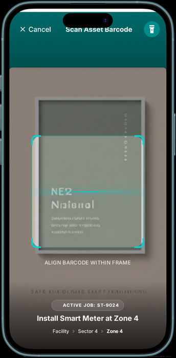 Mobile, scan-first workflows ensure assets are installed correctly in the field.